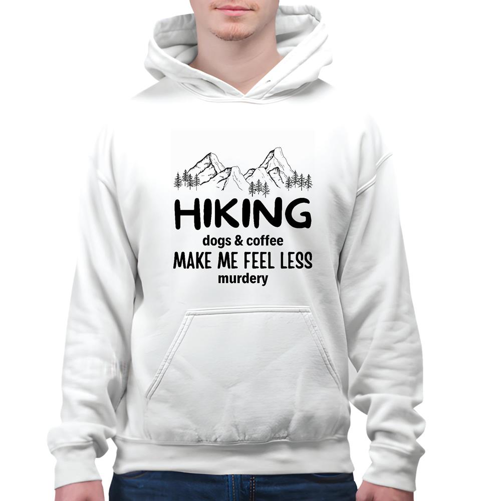 Funny Gift for Hikers Who Love Dogs and Coffee Feel Less Murdery humor White and Muticolor Unisex Hoodie