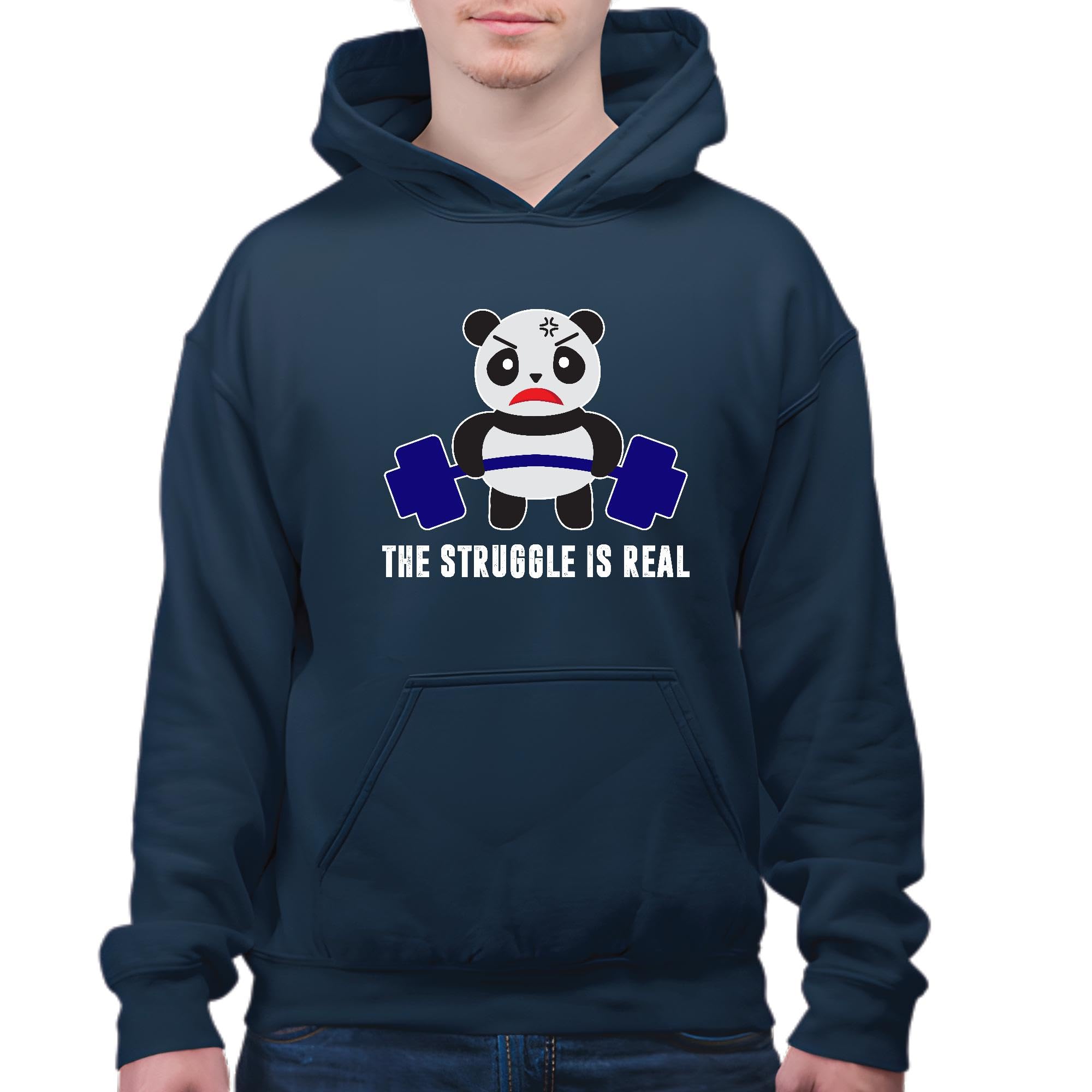 Funny Gym Gift for Deadlift Lovers Panda the Struggle is Real Bear Navy and Muticolor Unisex Hoodie