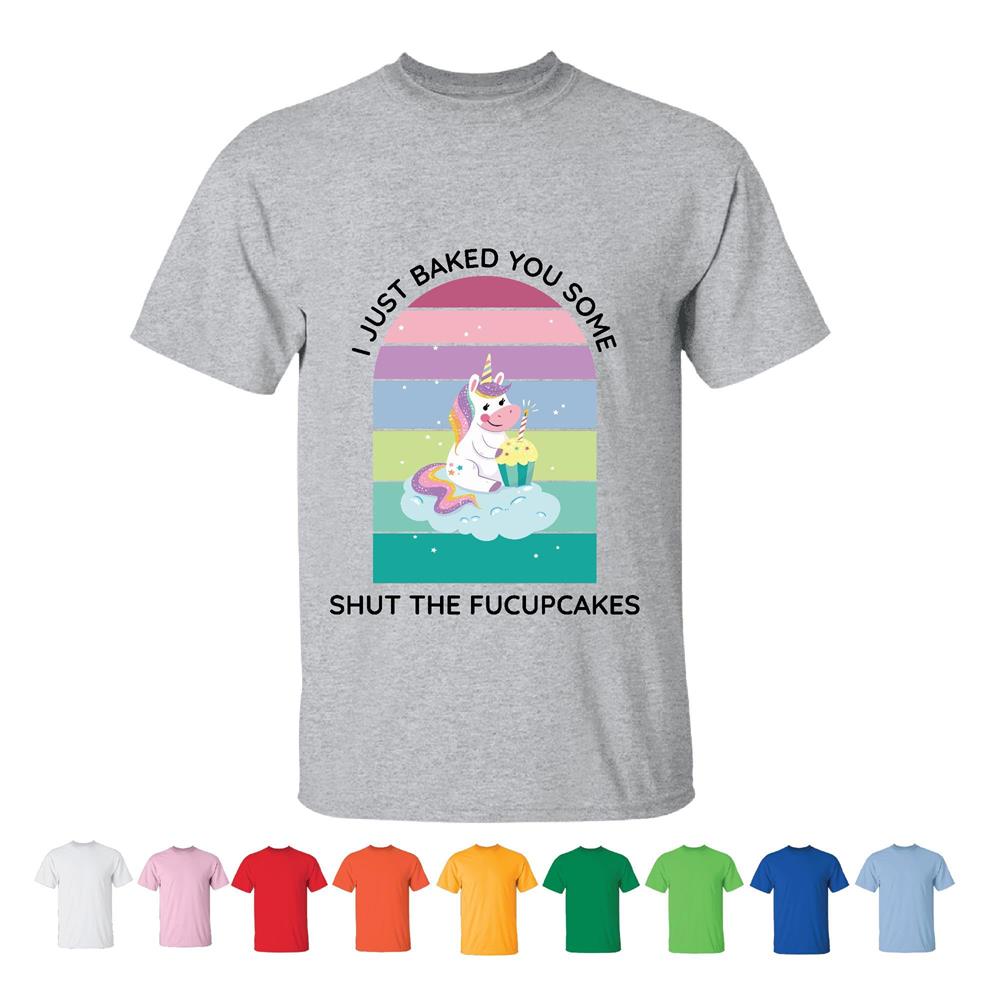 Funny Unicorn Cupcake Gifts for Adults Shut the Fucupcakes Joke Men Women White Gray T shirt
