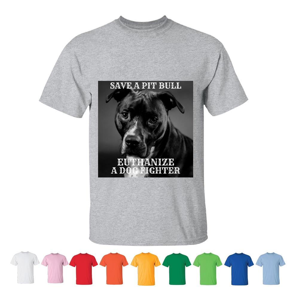 Gift for Animal Lovers Save a Pit Bull Euthanize a Dog Fighter Humorous Quote Men Women White Gray T shirt