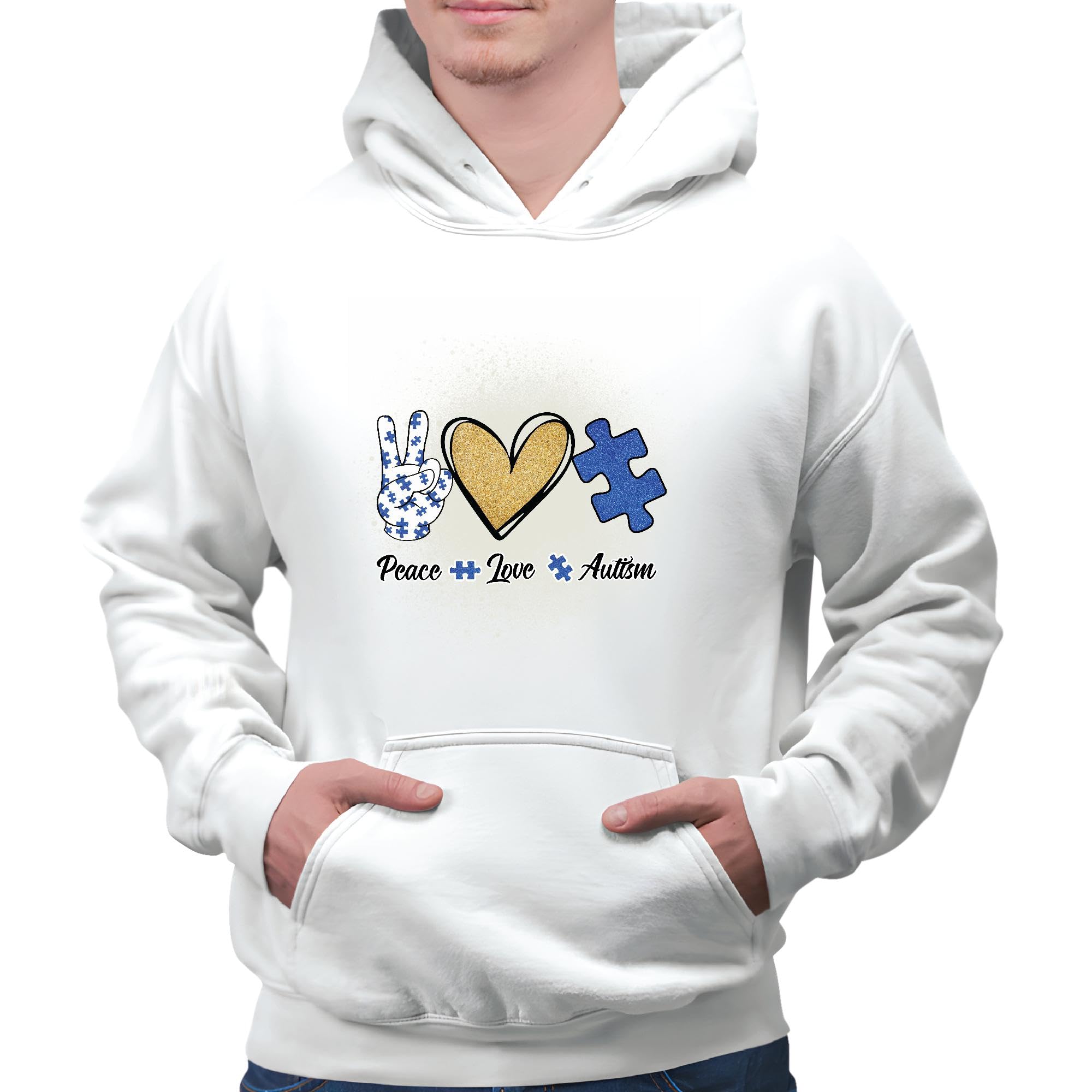 Gift for Autistic People Family Friends Peace Love Autism Awareness Month April Blue White and Muticolor Unisex Hoodie