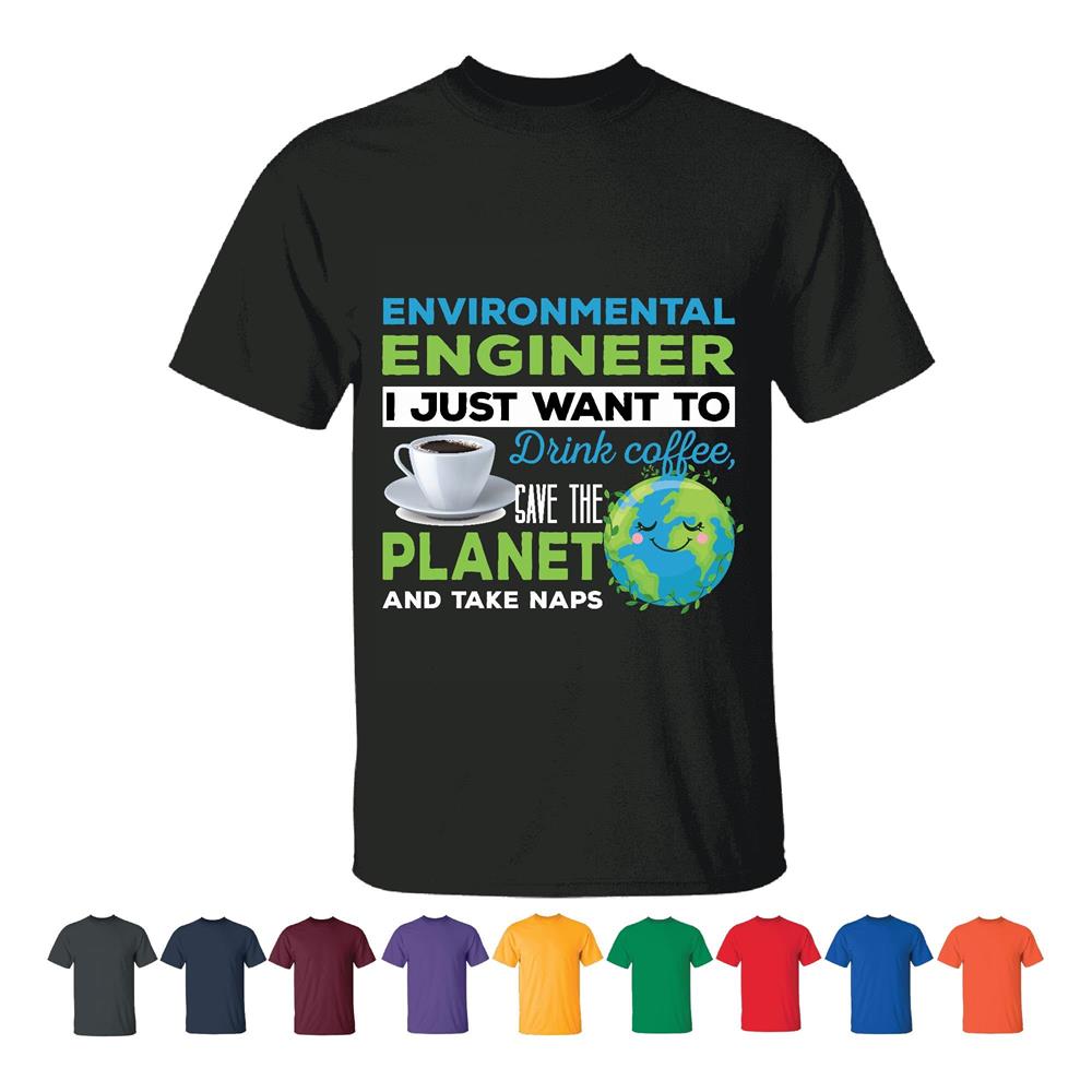 Gift for Environmental Engineers – Coffee Naps & Planet Saving Humor Men Women Black T shirt