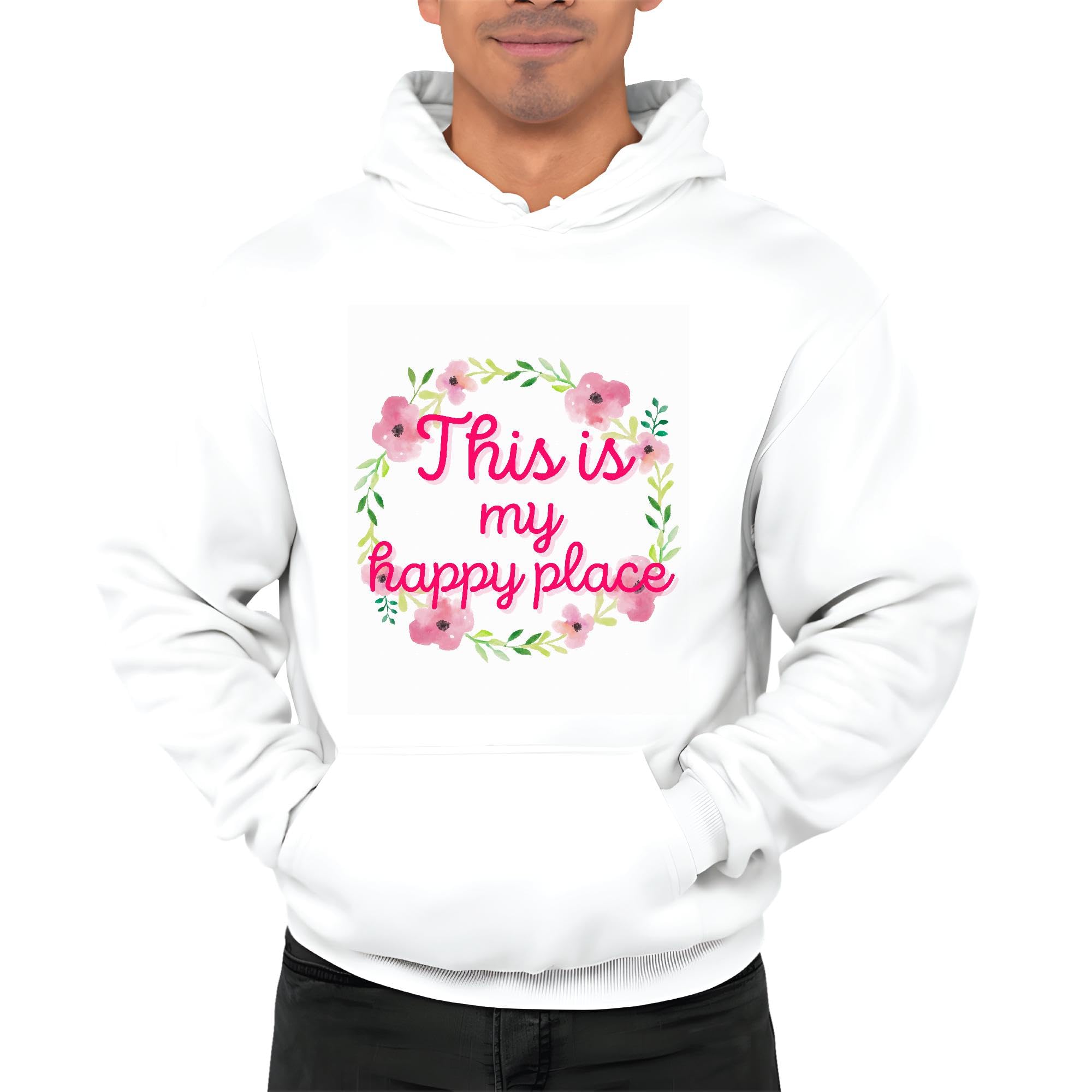 Gift for Mom Sister Friend Girl Happy Place Humor Wreath Beautiful Peace Place White and Muticolor Unisex Hoodie