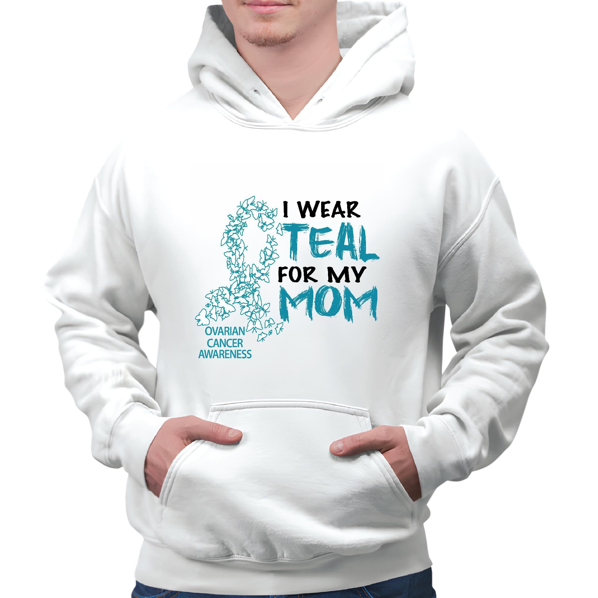 Gift For Ovarian Cancer Awareness Mom I Wear Teal Ribbon White and Muticolor Unisex Hoodie