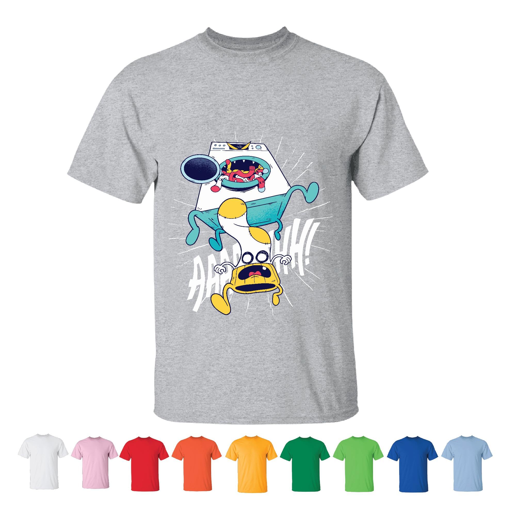 Gift Idea for Kids Washing Machine Monster Chasing a Sock Fun Home Appliance Decor Men Women White Gray T shirt