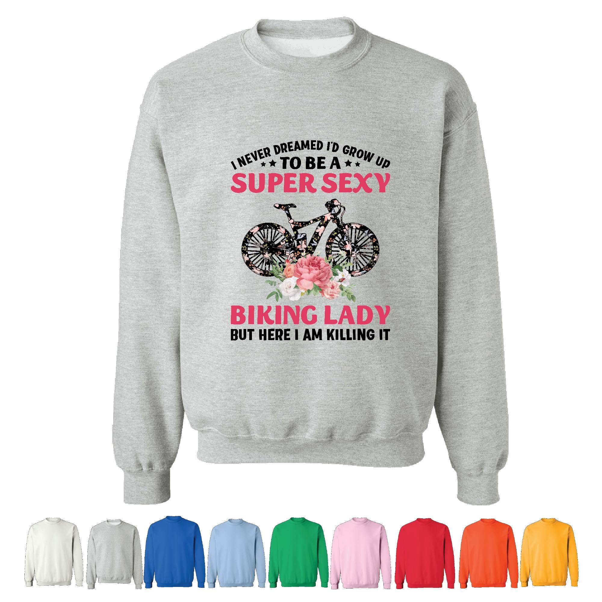 Gifts for Girls Who Love Biking Cycling Floral Designs Super Sexy Lady Dream Theme Grey Muticolor Unisex Sweatshirt