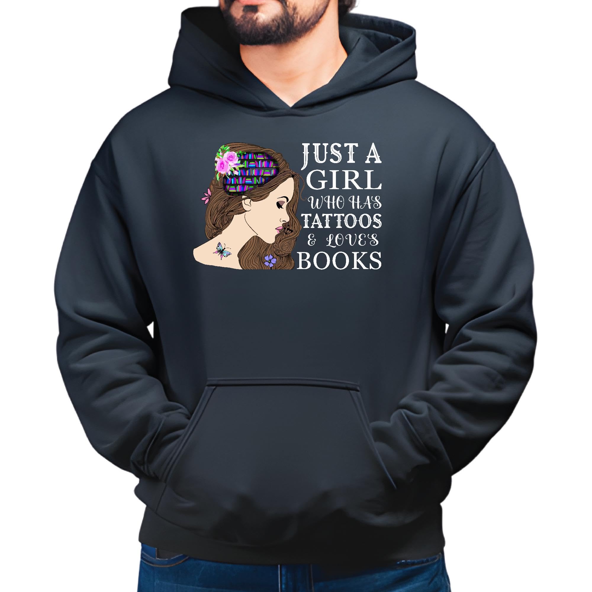 Girl who has Tattoos and Loves Books for Girl Woman Book lover Black and Muticolor Unisex Hoodie