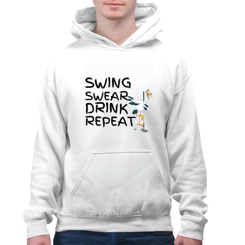 Golf Gift for Men Women – Swing Swear Drink Repeat Golfer Beer White and Muticolor Unisex Hoodie
