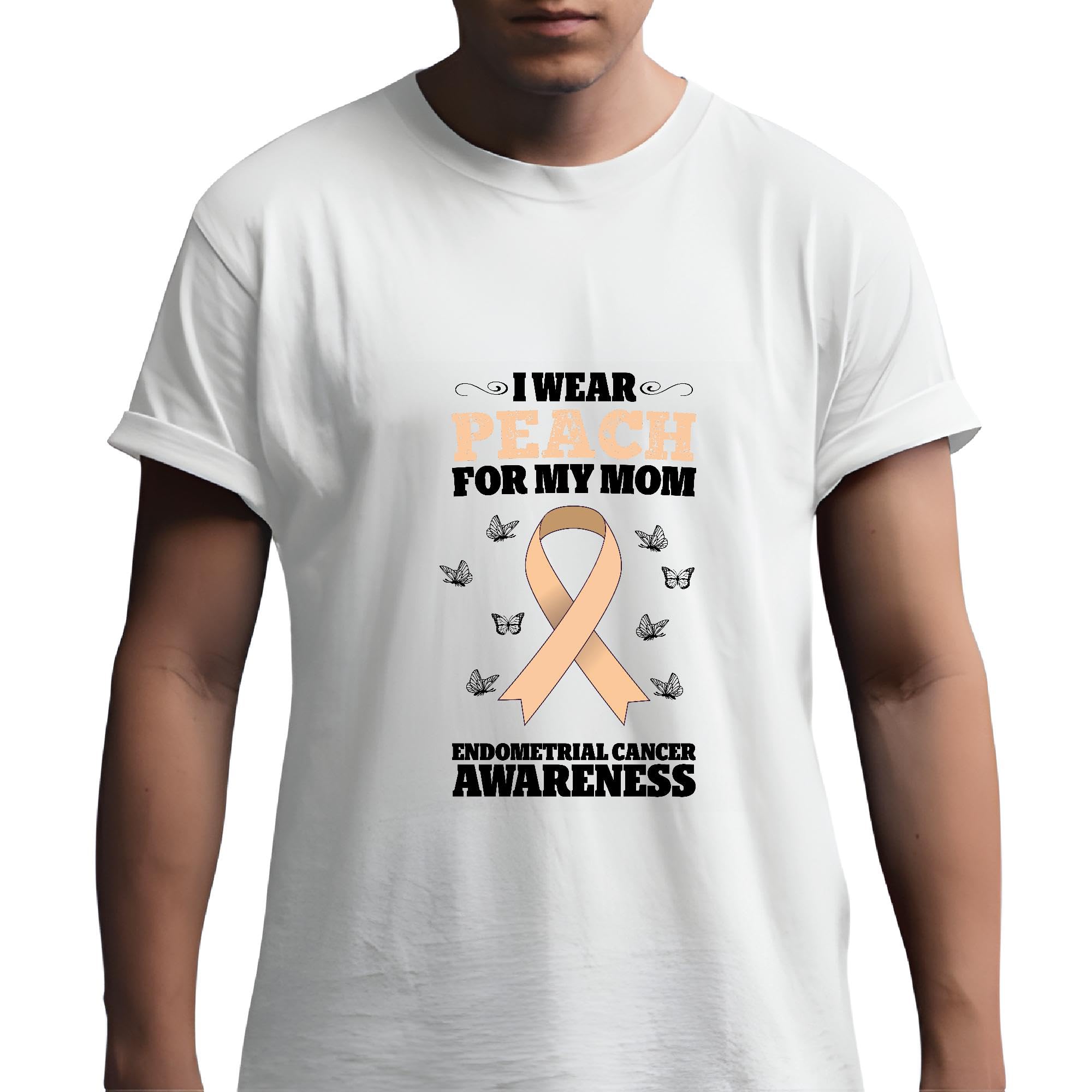 I wear Peach for Mom Endometrial Cancer Awareness for Mom Woman Men Women White Gray Multicolor T shirt