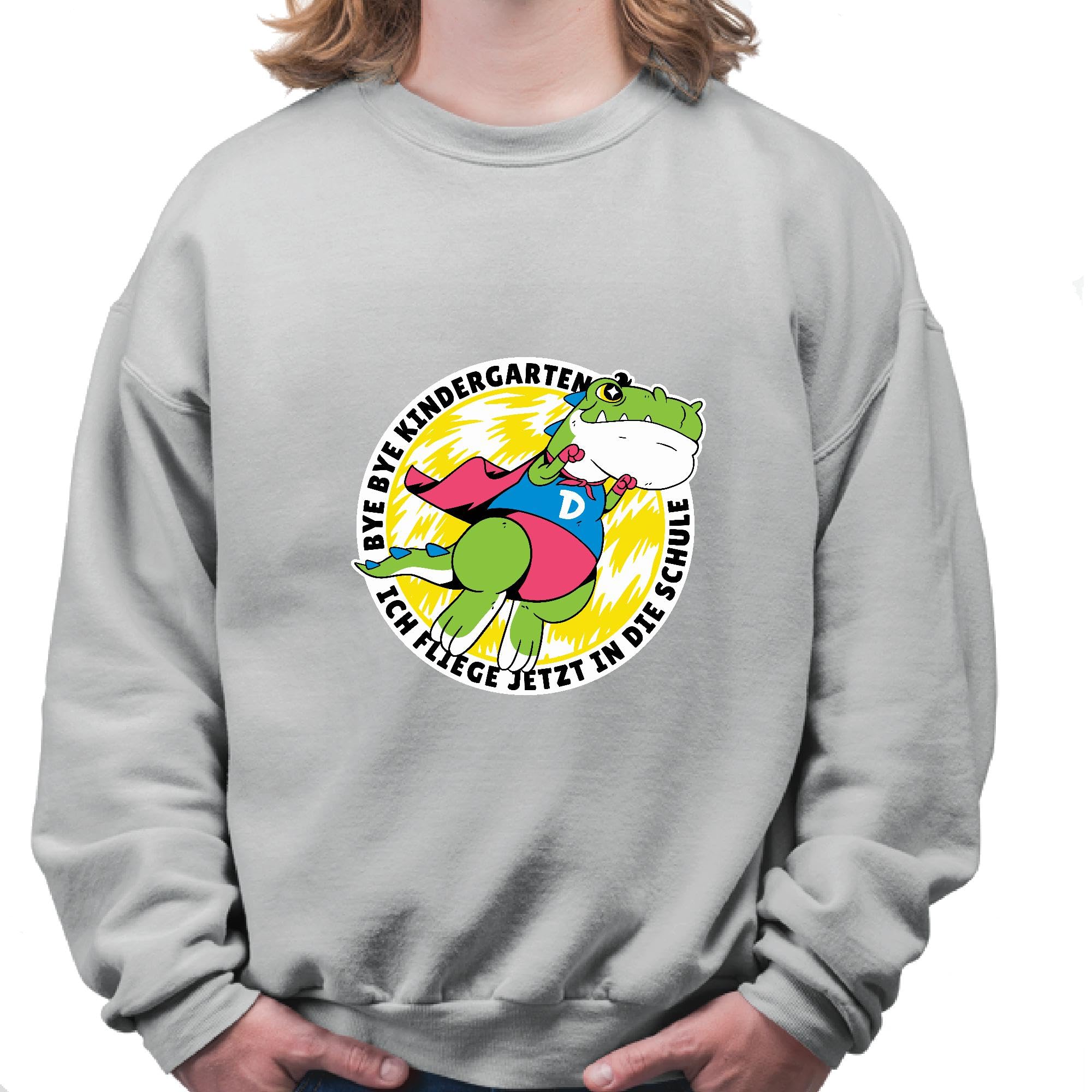 Kids Flying Superhero Gift Bye Bye Kindergarden Animals Quote Grey Muticolor Unisex Sweatshirt