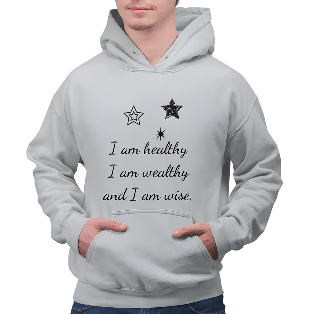 Law of Attraction Gift for Healthy Wealthy and Wise Inspirational Funny Gray and Muticolor Unisex Hoodie
