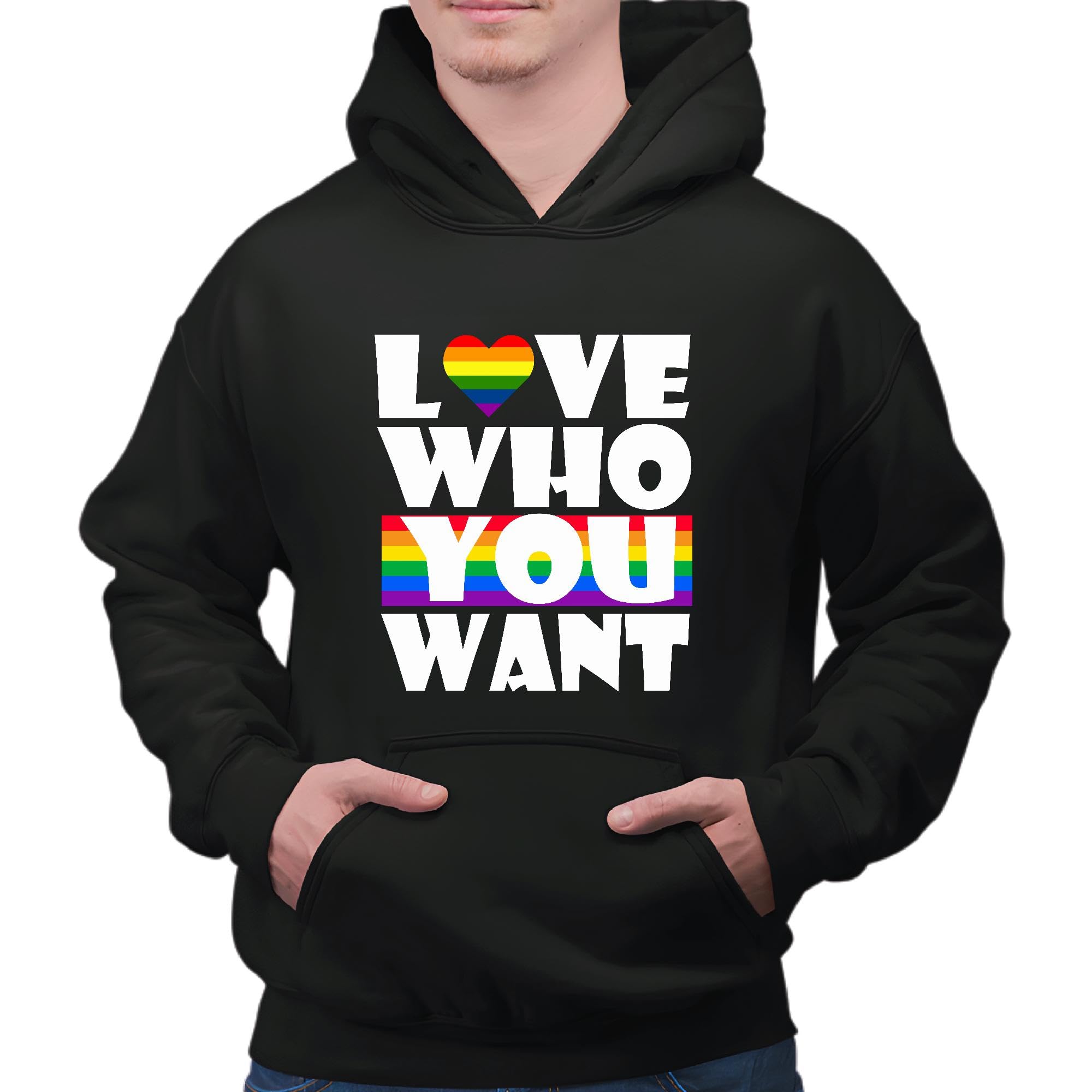 Love who you want Gay LGBT LGBTQ pride Black and Muticolor Unisex Hoodie