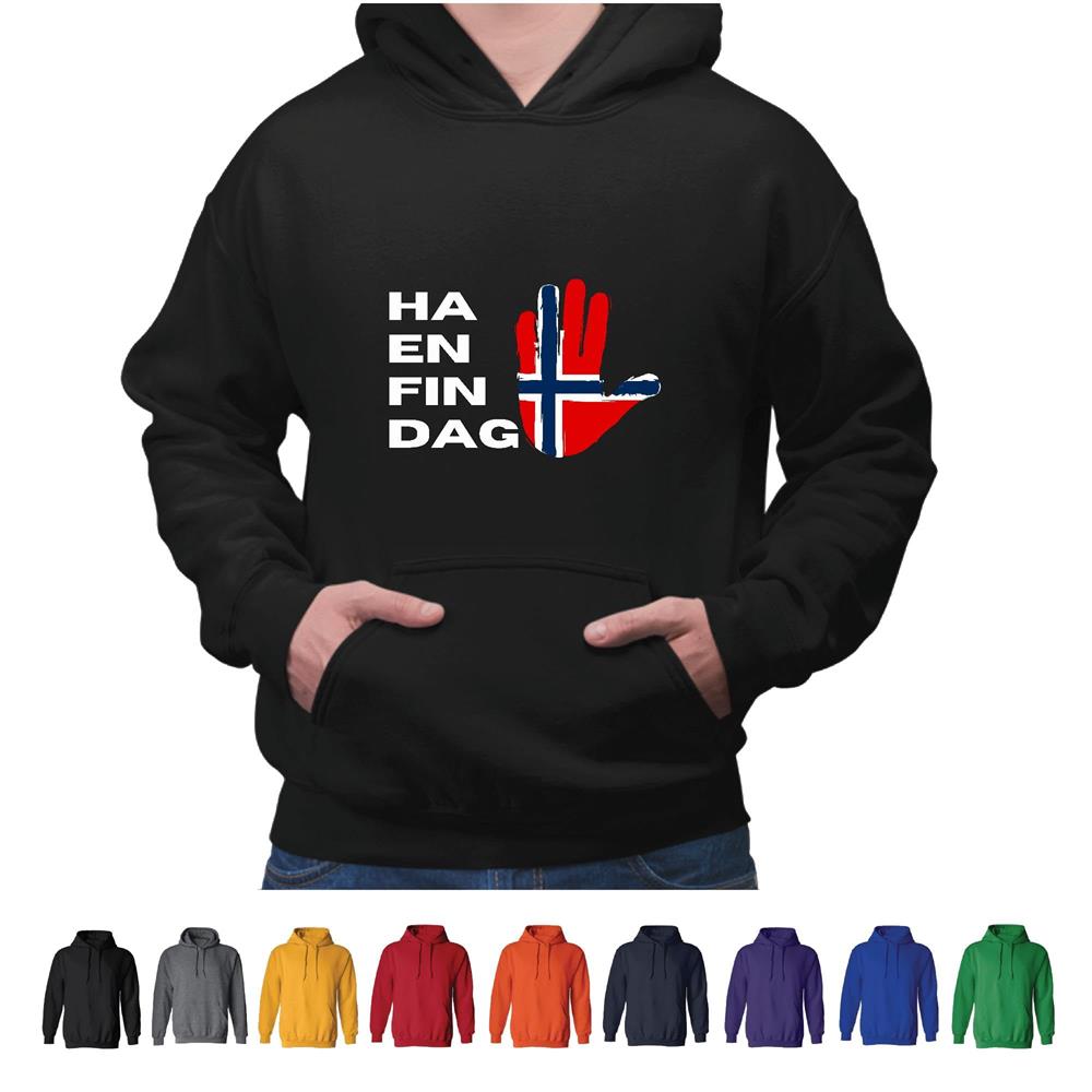 Norwegian Flag Fingerprints Gift for Norwegians Ha En Fin Dag Black and Muticolor Unisex Hoodie