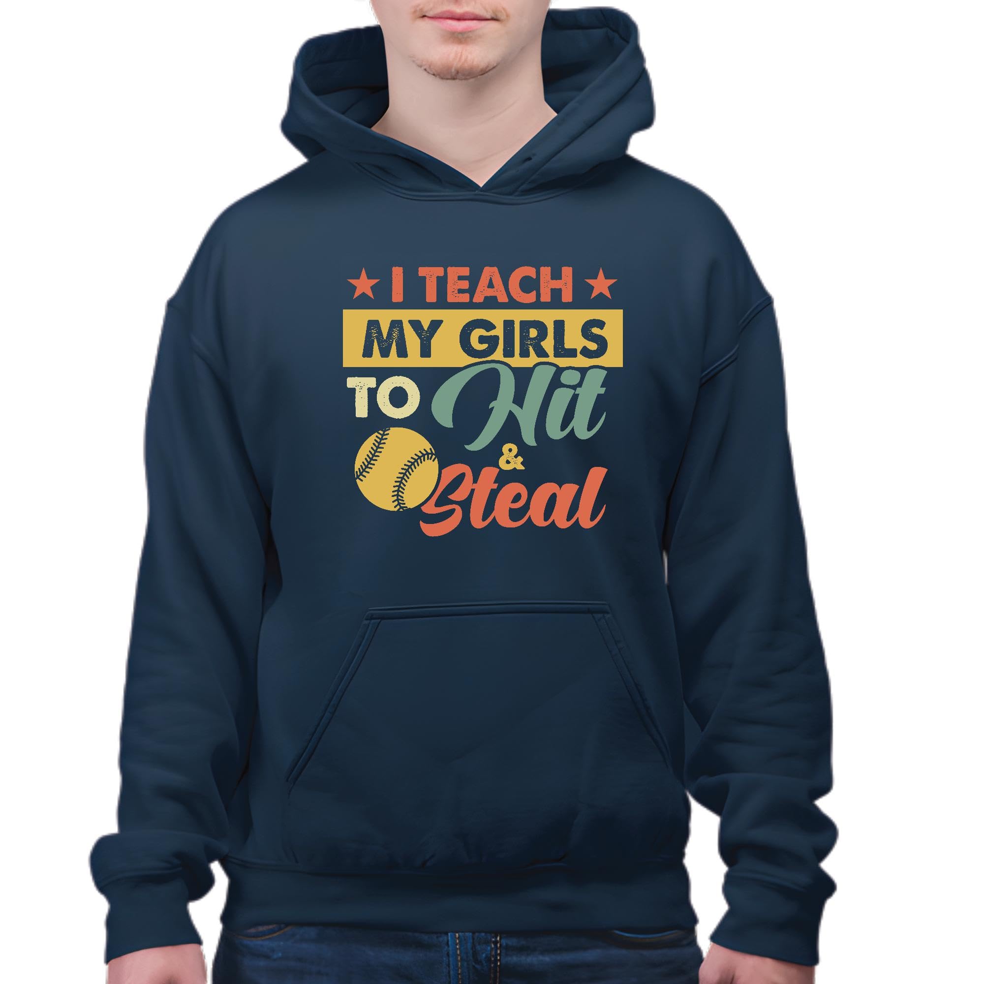 Softball Coaching Gift for Girls – Teach Them to Hit and Steal Navy and Muticolor Unisex Hoodie