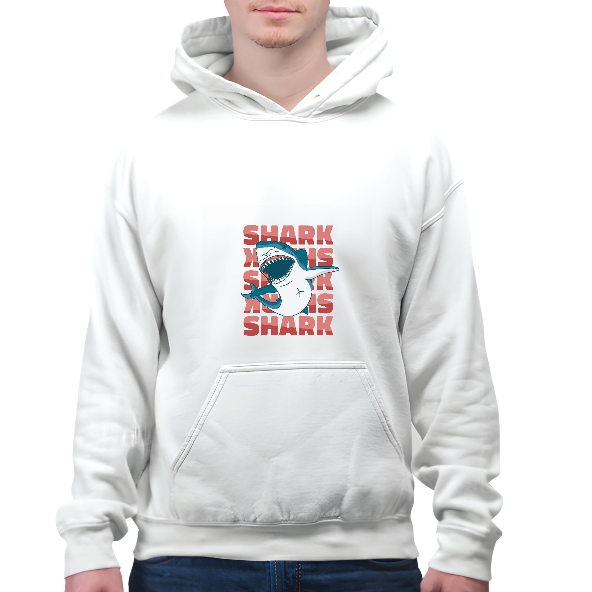 Unique Gift Idea for Shark Lovers Sea Animal Shark Swimming Design White and Muticolor Unisex Hoodie